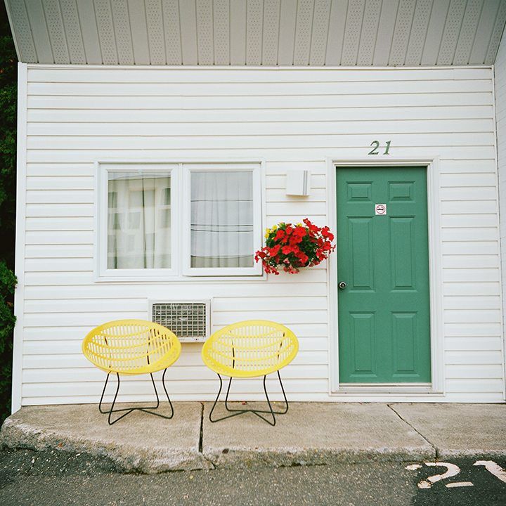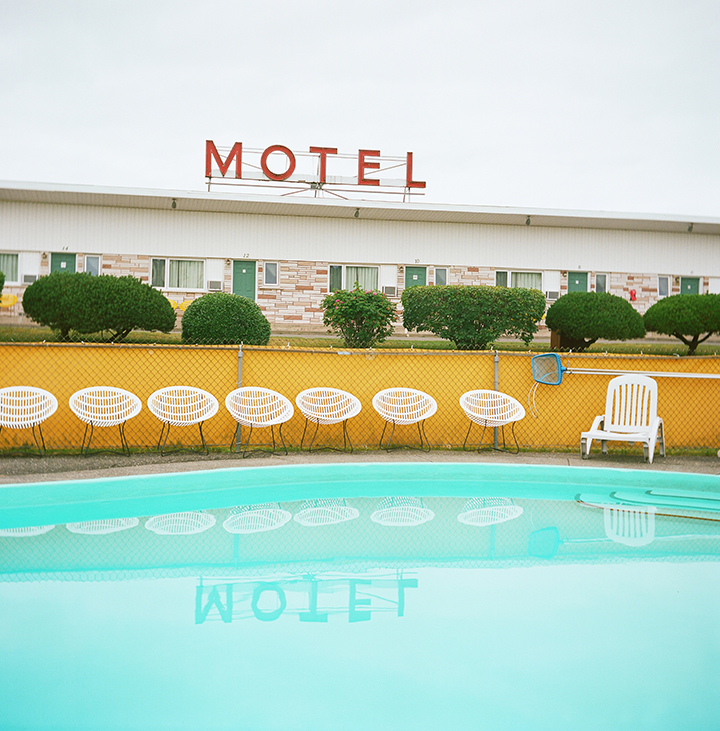 For Moreau, photography is a way to explore the relationships that exist between people and their environments. In particular, her work focuses on spaces centred on journeys and leisure, such as motels, parks, beaches, and stops along the way. These environments house many contradictions that Moreau’s work brings to light: comfort and in-comfort, vivacity and vacancy, full and empty. She is inspired by the lively colours, contrast, and symmetry inherent to the subjects of her work.