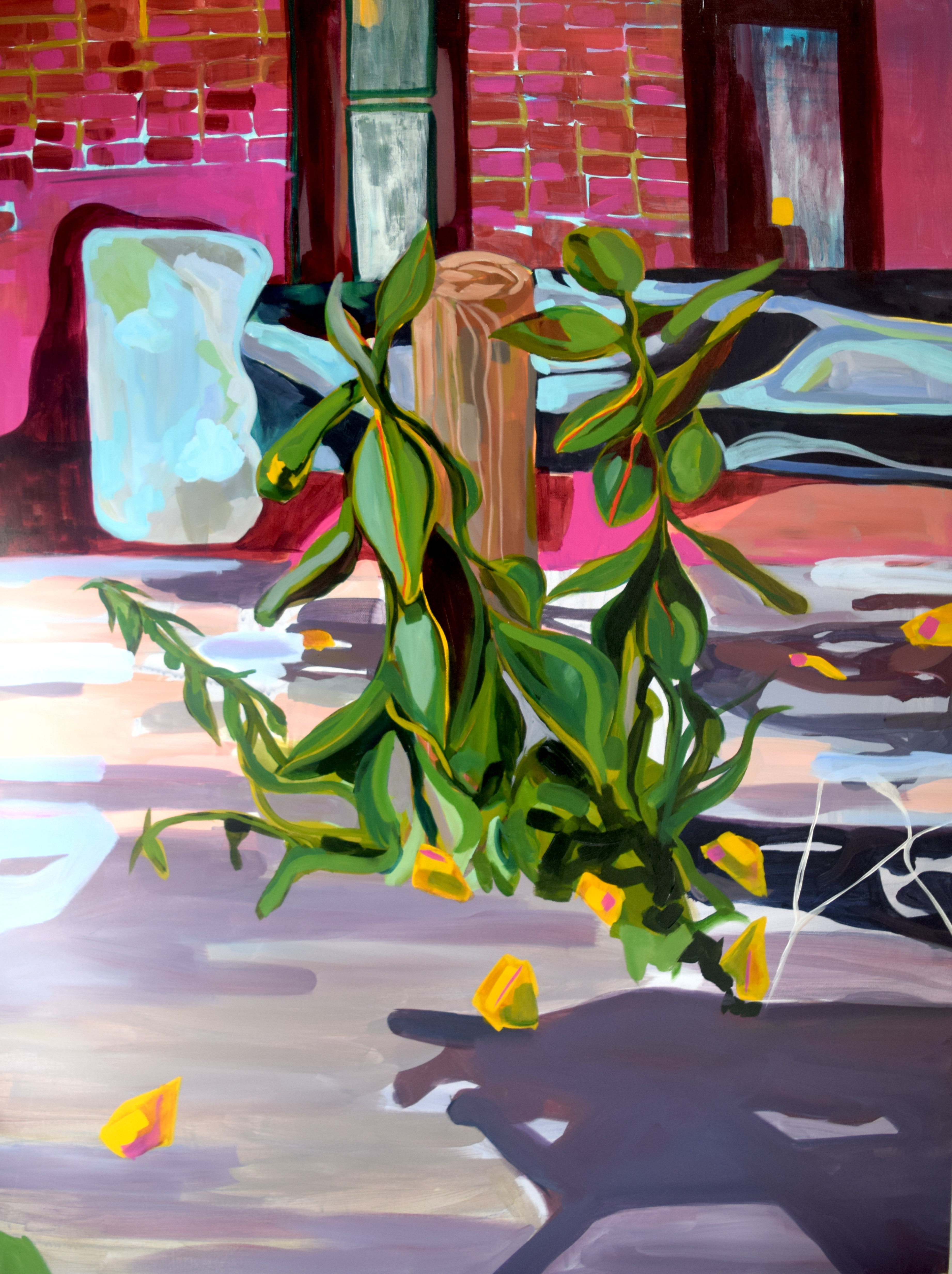 Jackie Stendel is a visual artist from Toronto, Ontario. She explores painting, installation, photography and drawing. She graduated from Claude Watson School for the Arts, and is currently studying Art Education at Concordia University. She uses colour and images to analyze the demarcation between nature-made and human-made settings and objects. By using bright, toxic colours to represent the altered landscape, and natural colours to represent the nature-made, her work explores emotional questions pertaining to our relationship with nature.