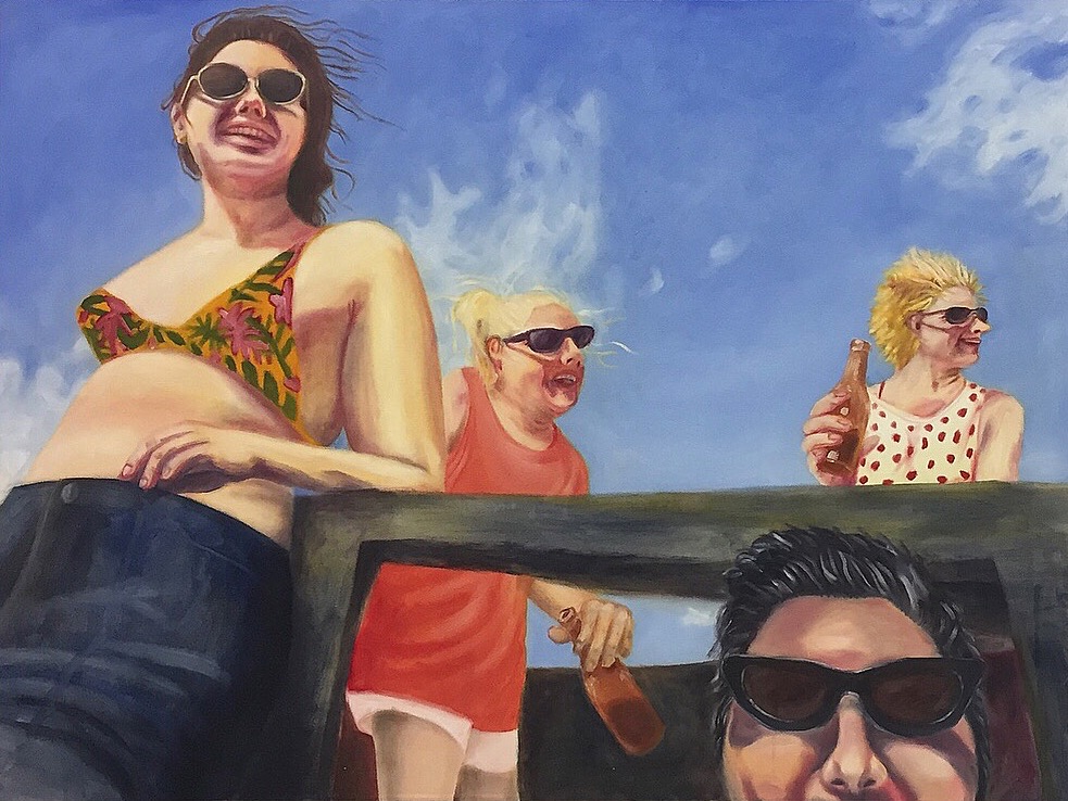 I have also been interested in exploring familiar domestic scenes and the contradictions of the millennial lifestyle, suburbia has always been where I call home and I am inspired by the different lifestyle of the suburbs. By working mostly with my family photos I create a feeling of "Familiar" by having a personal connection to the artwork and the imagery as well as a feeling of "Familiar" for the audience being able to recognize themselves within.I am a Montreal based artist pursuing a bachelors degree in Fine Arts at Concordia University, primarily focused on painting, printmaking and sculpture.
