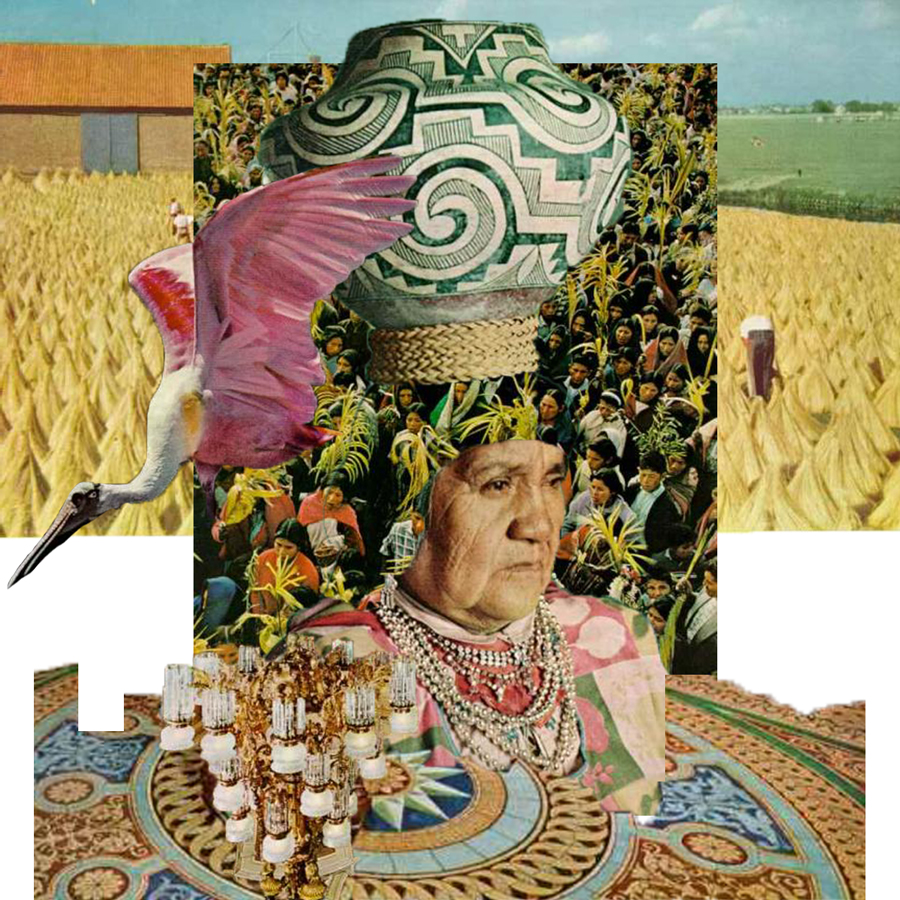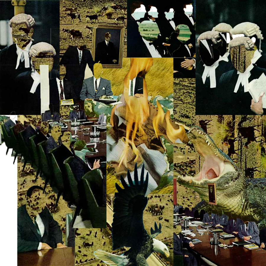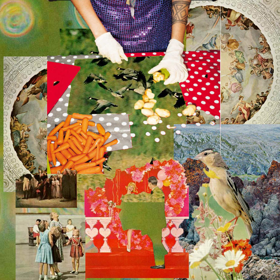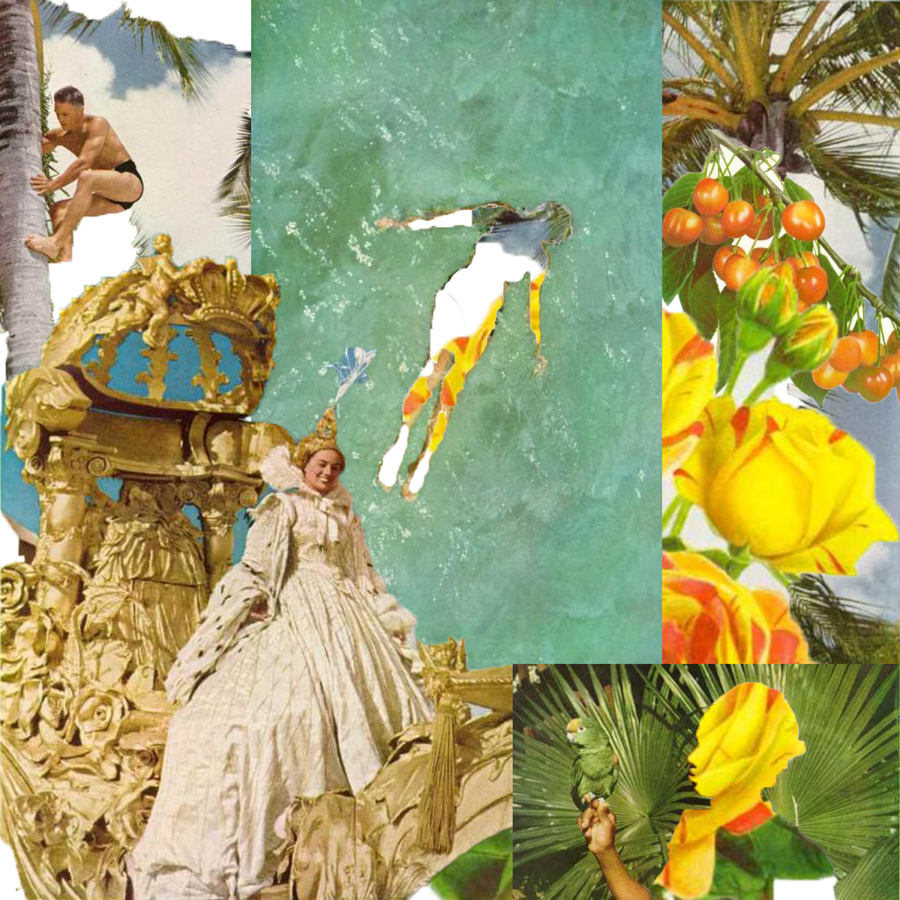 These collage works are first and foremost an exercise in keeping my brain active, solving problems and at the same time, working without any rules. Through pulling from public archives like National Geographic books, I'm transported back to my childhood when I did the same thing with scissors and glue.