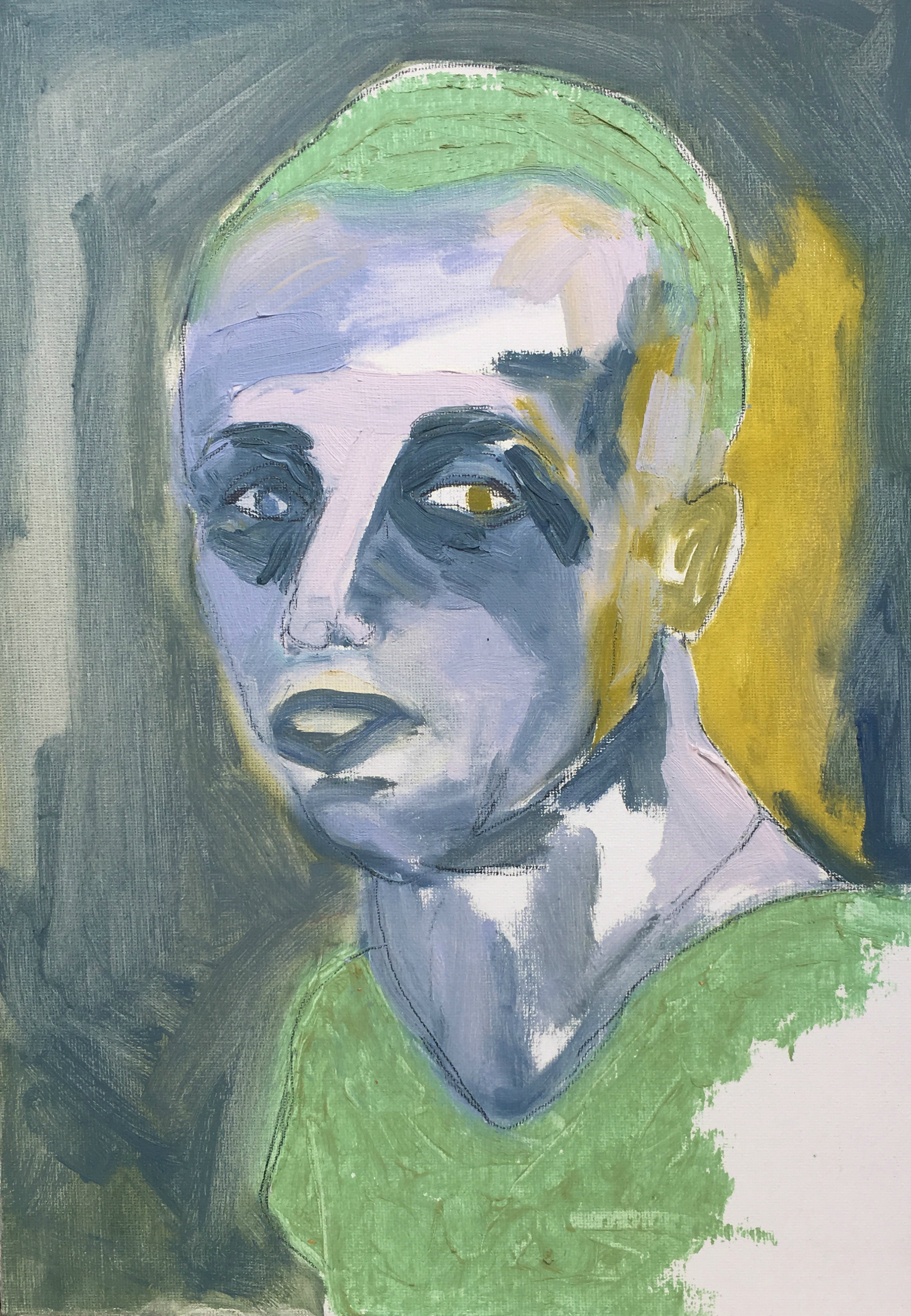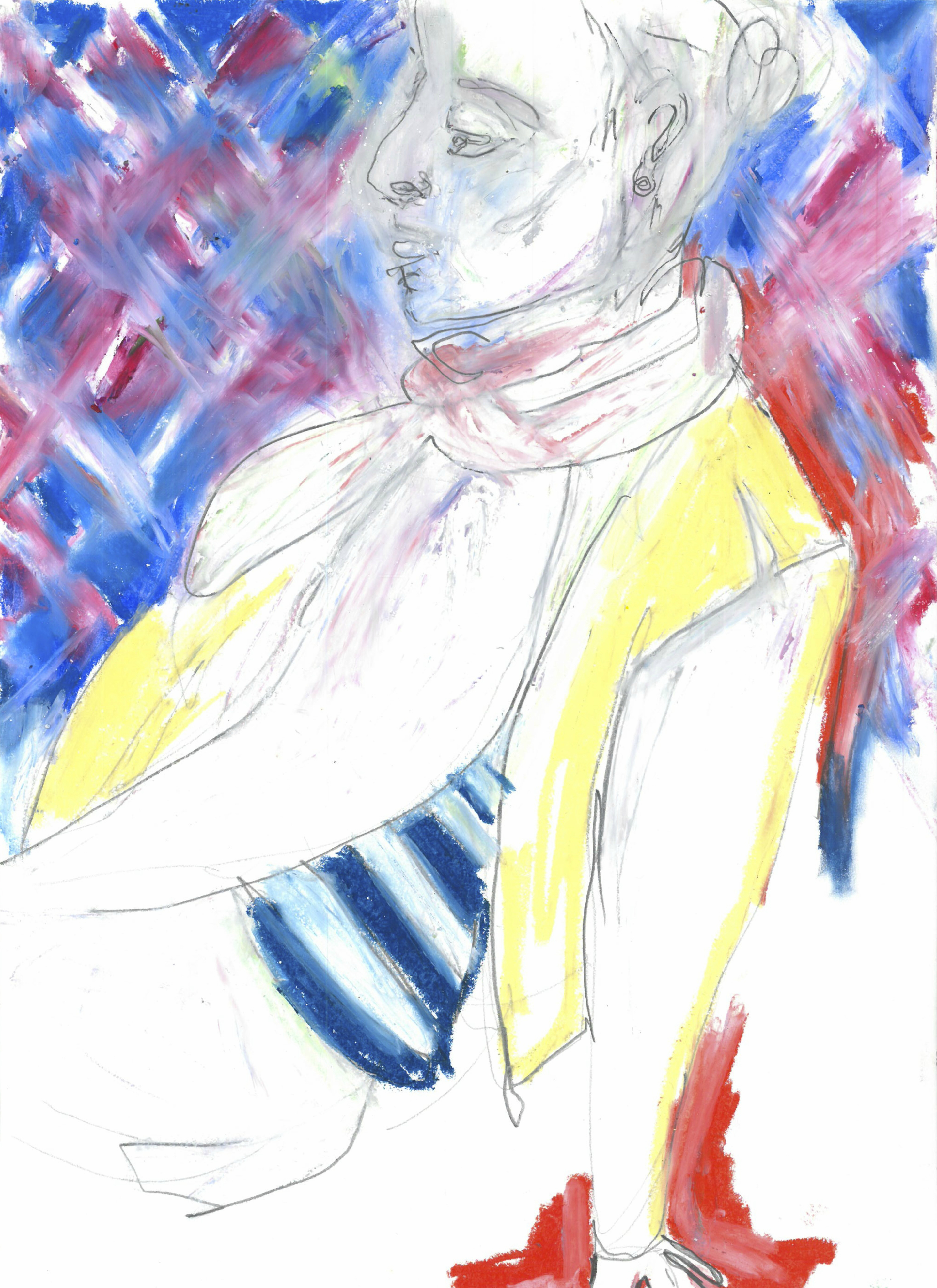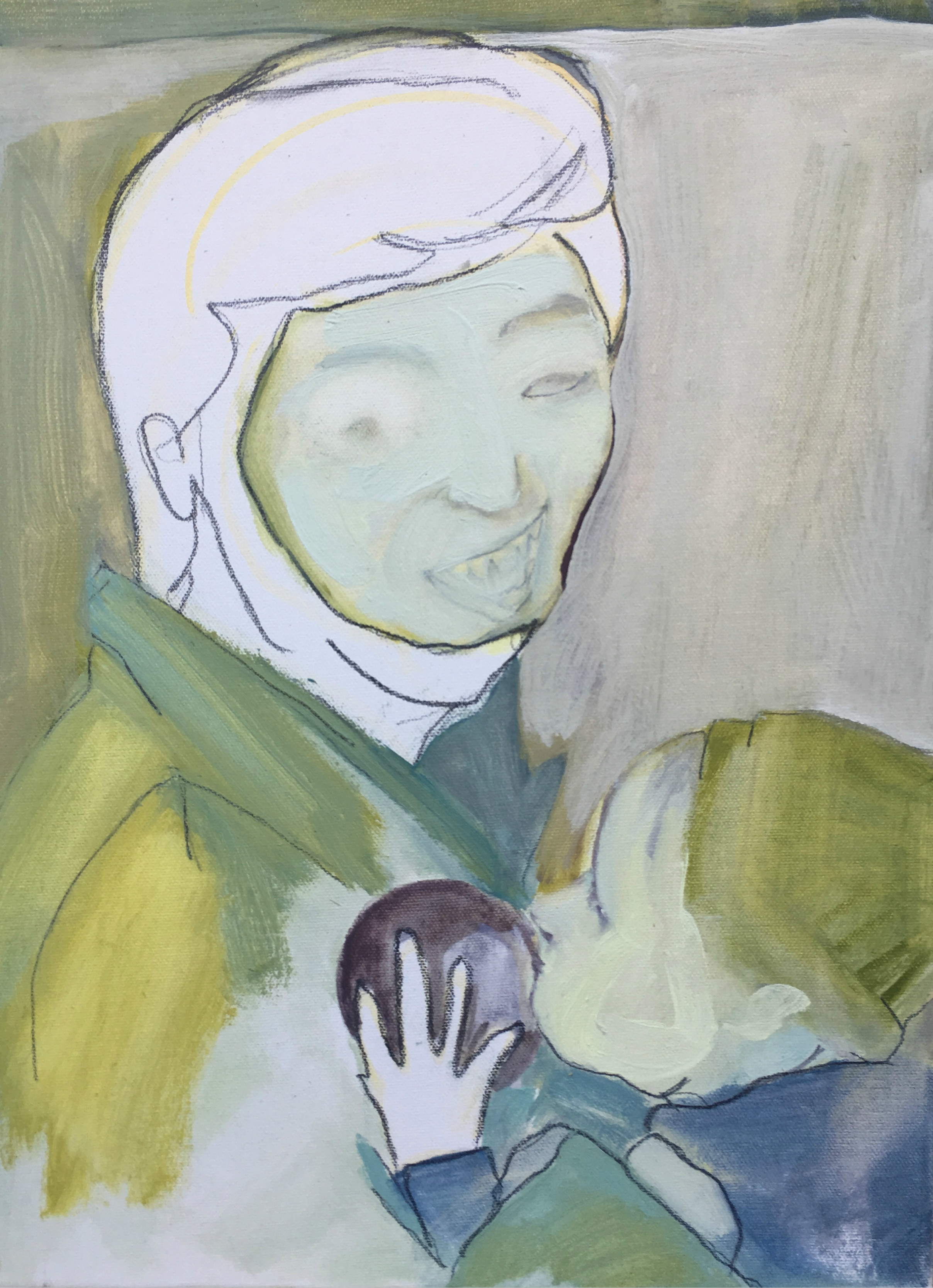 She practices drawing, painting, collage, and amateur photography. Since the end of her studies at Concordia (2013), her style has been evolving constantly, representing mainly portraiture. The visual language is predominantly expressionist, offering a playful and naïve approach, by the use of colour and distortion in the rendering of bodies.