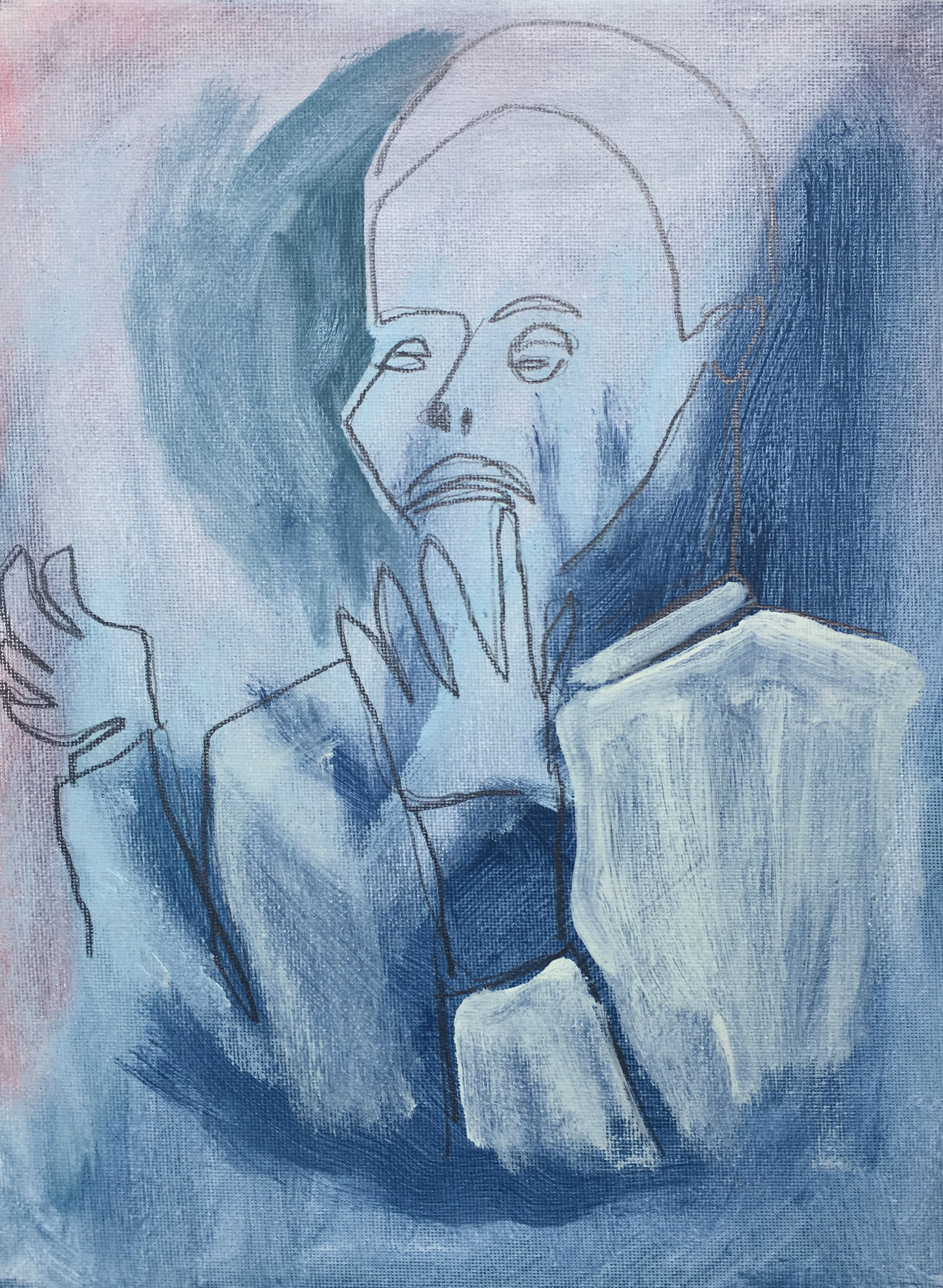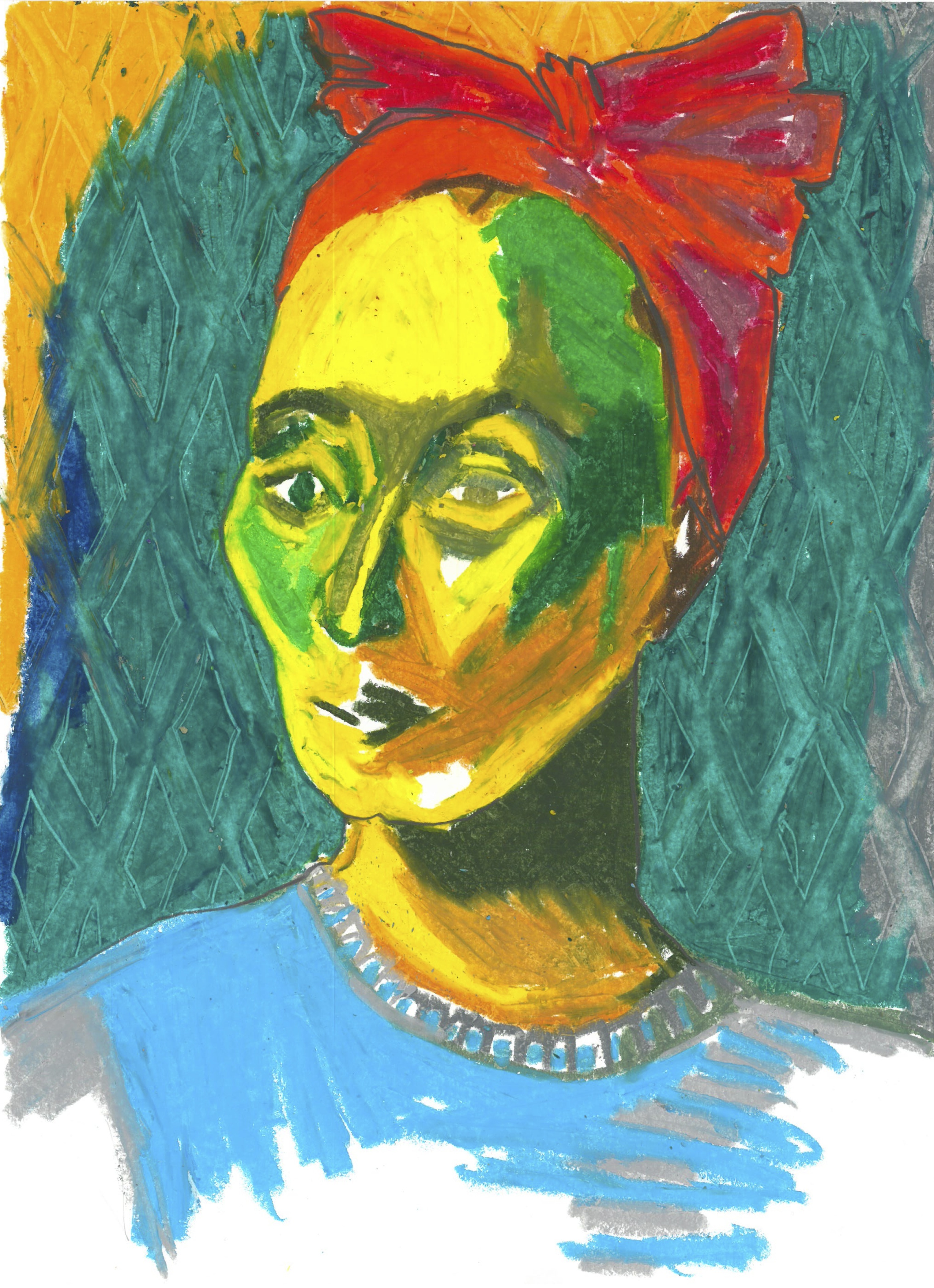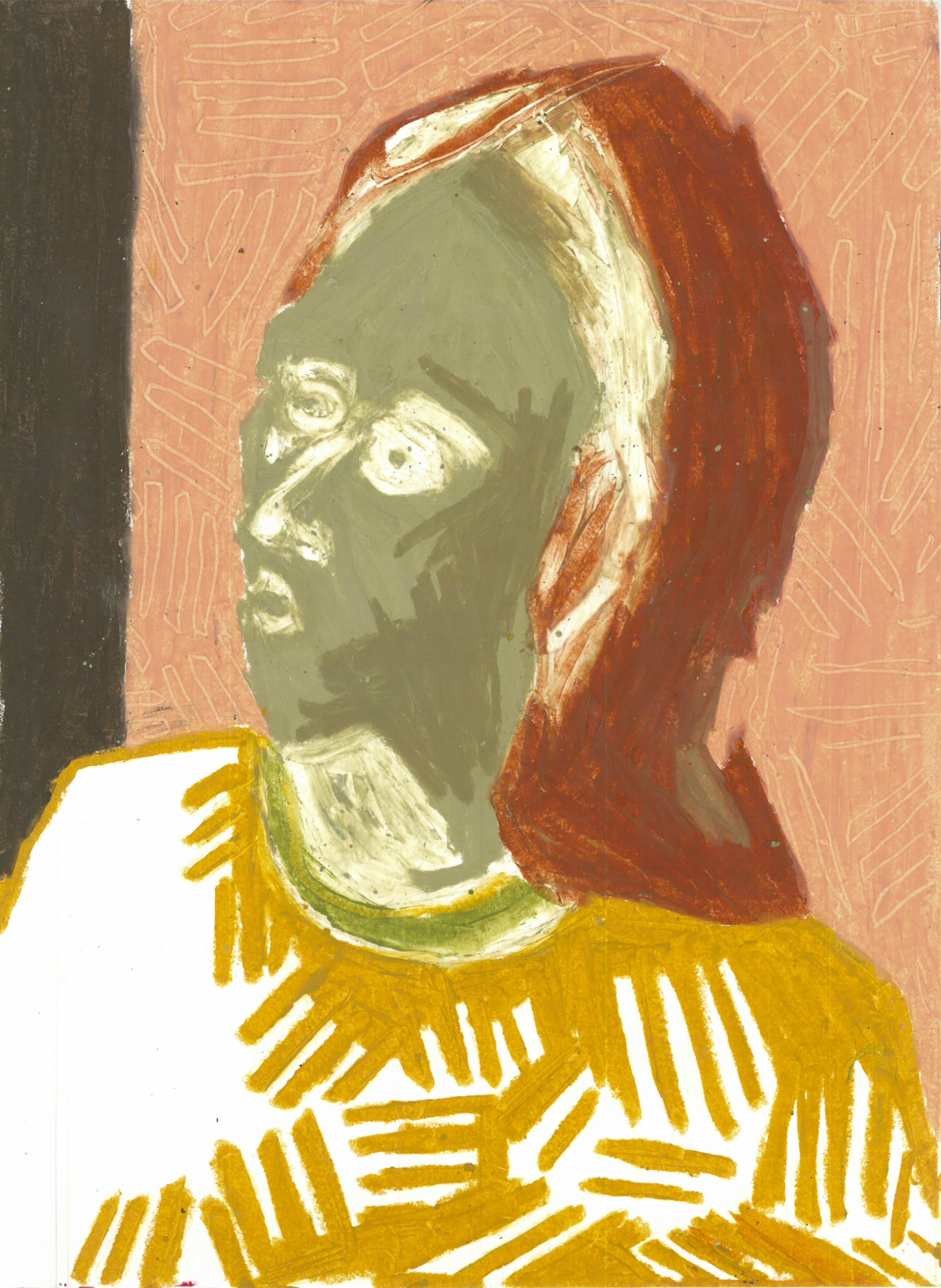 She practices drawing, painting, collage, and amateur photography. Since the end of her studies at Concordia (2013), her style has been evolving constantly, representing mainly portraiture. The visual language is predominantly expressionist, offering a playful and naïve approach, by the use of colour and distortion in the rendering of bodies.